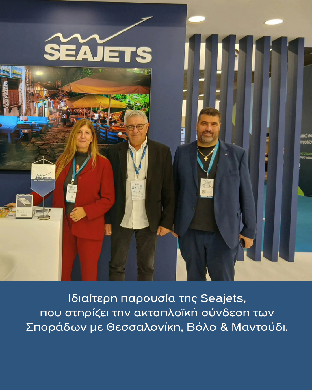Σημαντική ήταν και η παρουσία της Seajets, εταιρείας που έχει στηρίξει ουσιαστικά την ακτοπλοϊκή σύνδεση Θεσσαλονίκης – Σποράδων αλλά και τη συνολική διασύνδεση με Βόλο και Μαντούδι. Στο stand της εταιρείας παρευρέθηκε ο εκπρόσωπος του εμπορικού τμήματος, κ. Βασίλης Αδάμης.